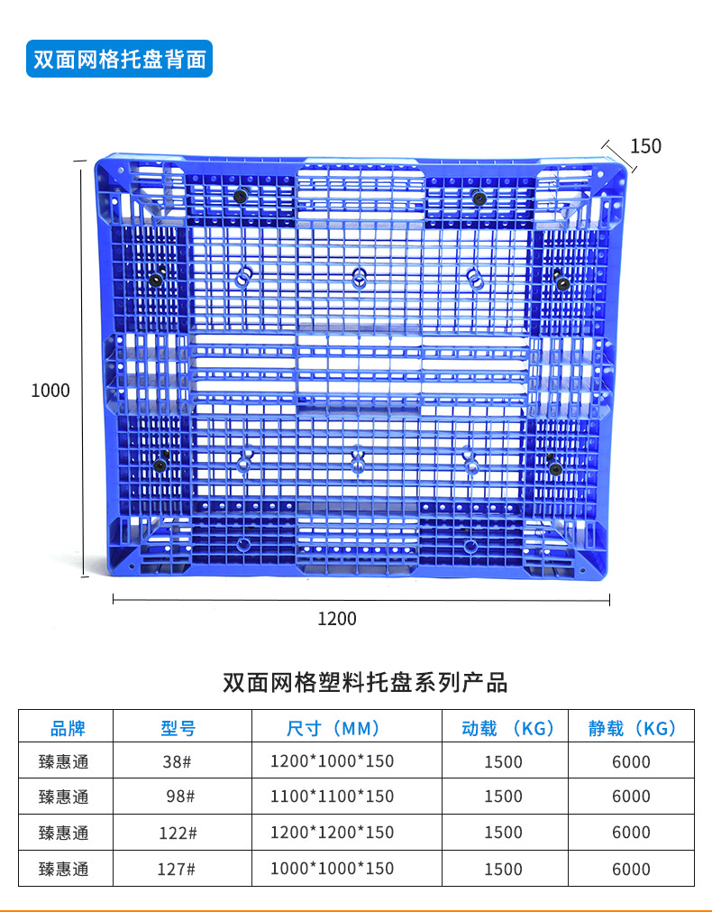 雙麵塑料托盤正反兩麵均為承載麵,支持(chí)翻轉使用,結構對稱,適合高頻(pín)率周(zhōu)轉場景。