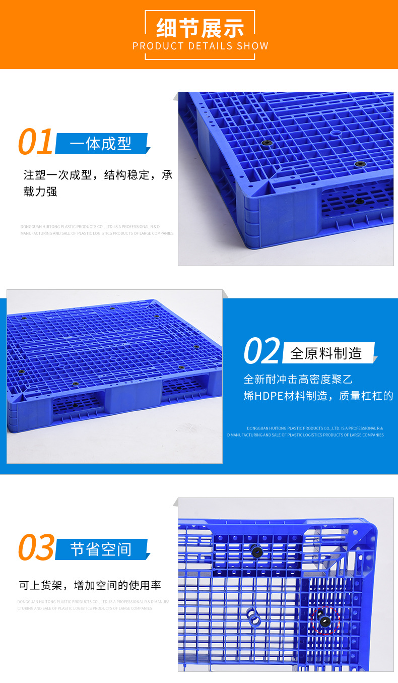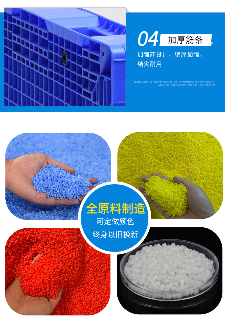主要(yào)采用HDPE(抗衝擊高密度聚乙烯) ,具有高硬度、耐(nài)低溫性,適合冷庫(kù)和(hé)重載場景;PP(聚丙烯)則(zé)耐高溫,適用於高溫環境。